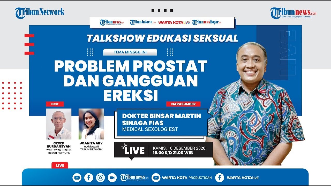 TRIBUN-VIDEO.COM - Program Edukasi Seksual kali ini bertajuk 'Kupas Problem Prostat dan Gangguan Ereksi' bersama Medical Sexologist dr Binsar Martin Sinaga FIAS.