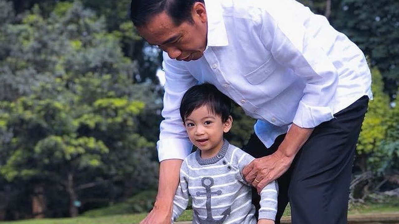 Cucu pertama Presiden Jokowi, Ethes terlihat melambaikan tangan dan memberikan kiss bye.