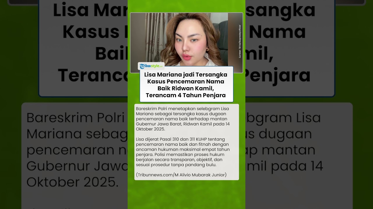 TRIBUN-VIDEO.COM - Bareskrim Polri menetapkan selebgram Lisa Mariana sebagai tersangka dalam kasus dugaan pencemaran nama baik terhadap mantan Gubernur Jawa Barat, Ridwan Kamil.
