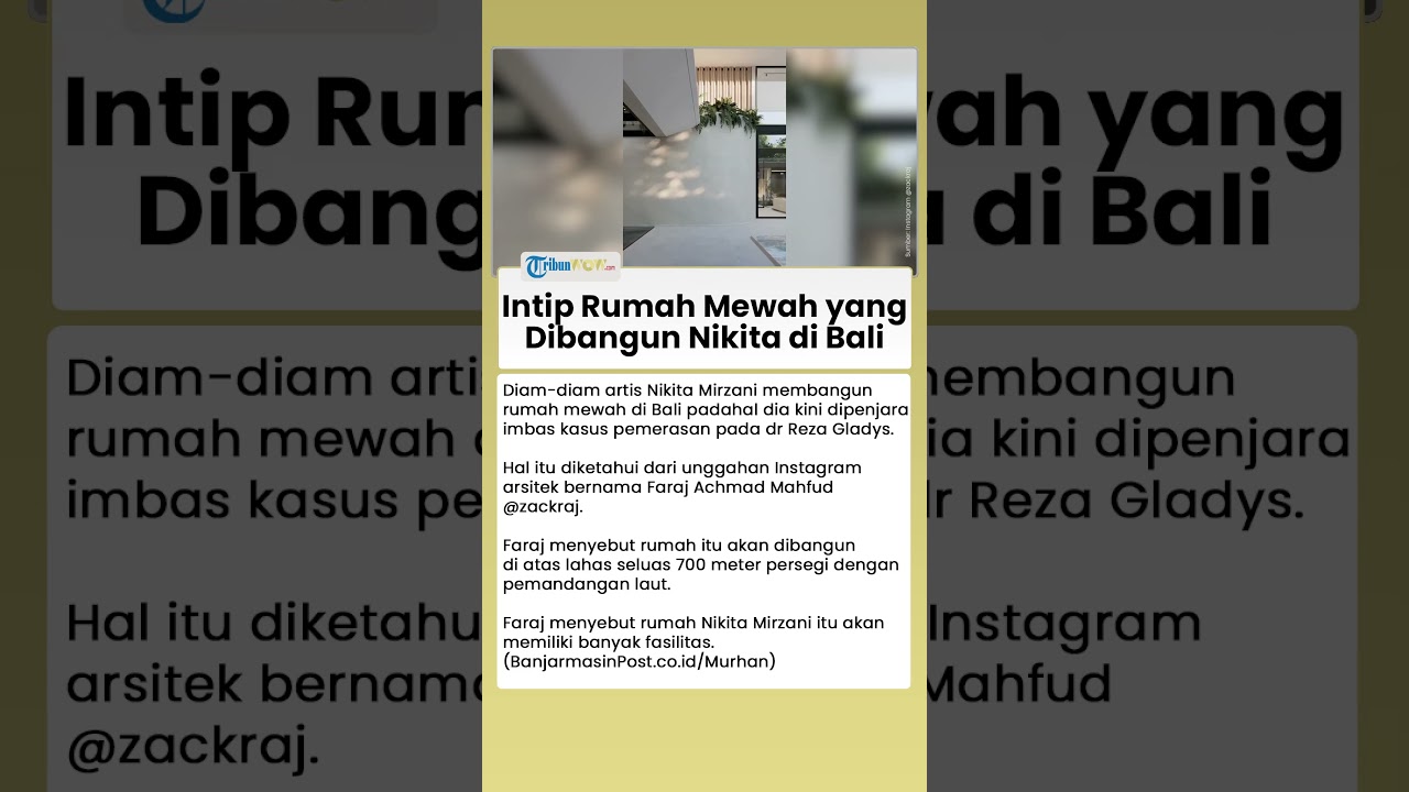 Artikel ini telah tayang di BanjarmasinPost.co.id dengan judul Diam-diam Nikita Mirzani Bangun Rumah Mewah di Bali Saat Dipenjara, Asal Usul Uang NM Kini Terkuak