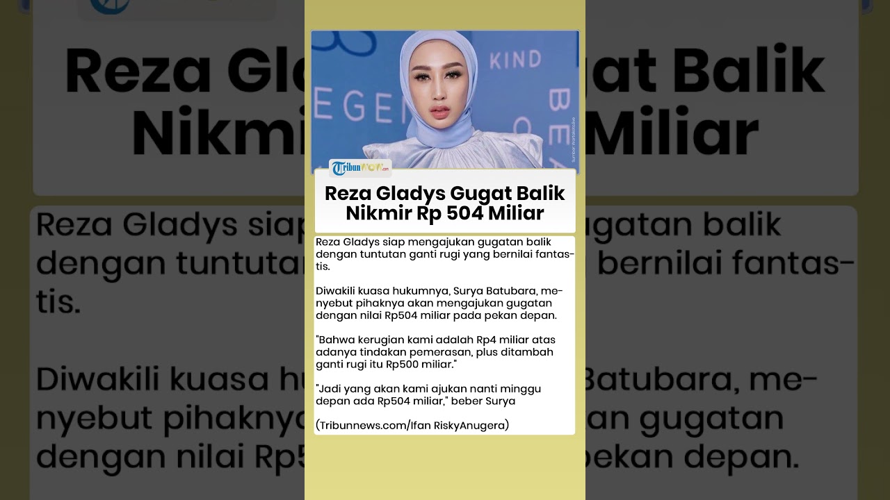 Artikel ini telah tayang di Tribunnews.com dengan judul Pihak Reza Gladys Siap Gugat Balik dan Minta Ganti Rugi Rp504 Miliar ke Nikita Mirzani