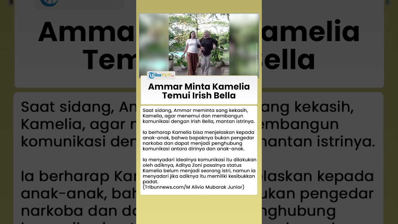 Artikel ini telah tayang di Tribunnews.com dengan judul Ammar Zoni Minta Kamelia Temui Irish Bella, Ini yang Diharapkannya