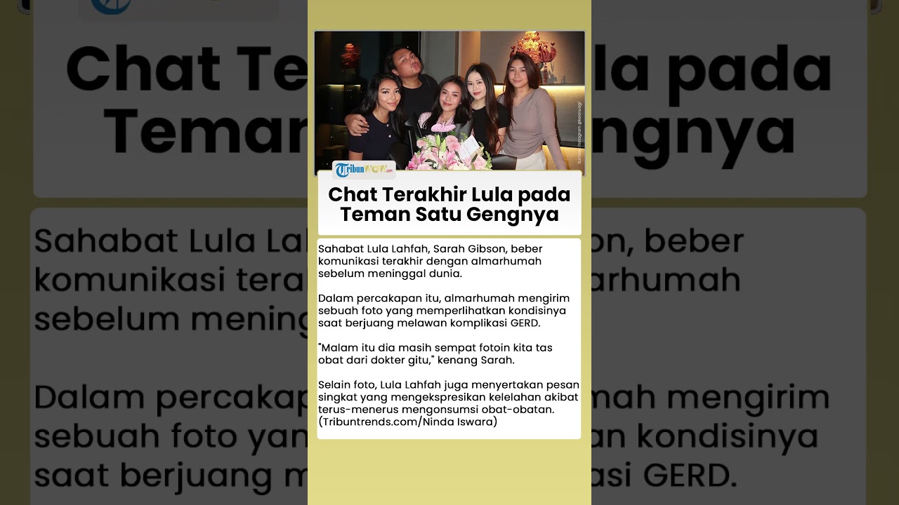 Artikel ini telah tayang di Tribuntrends.com dengan judul Batal Kumpul dengan Teman, Ini yang Dilakukan Lula Lahfah, Pukul 10 Malam Pulang, Erangan Kesakitan