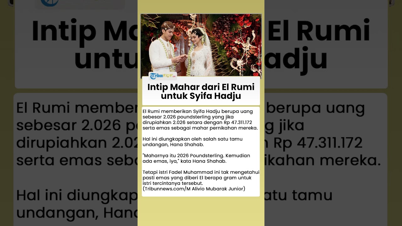 TRIBUN-VIDEO.COM - El Rumi memberikan Syifa Hadju berupa uang sebesar 2.026 poundsterling serta emas sebagai mahar pernikahan mereka.