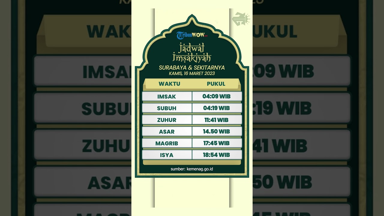TRIBUN-VIDEO.COM - Simak jadwal imsakiyyah wilayah Surabaya dan sekitarnya untuk Kamis (16/3/2023), bagi Anda yang ingin melakukan ibadah puasa besok.