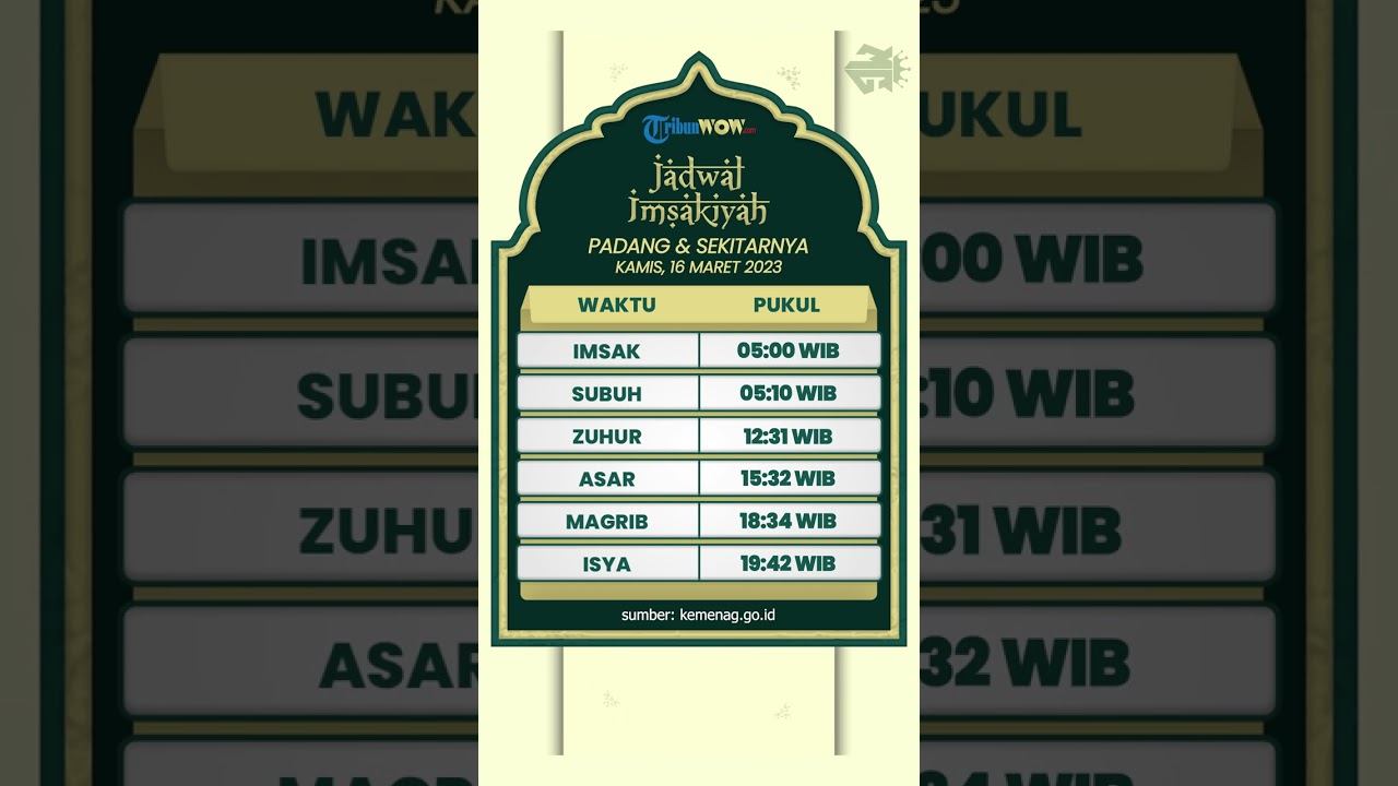 TRIBUN-VIDEO.COM - Simak jadwal imsakiyyah wilayah Padang dan sekitarnya untuk Kamis (16/3/2023), bagi Anda yang ingin melakukan ibadah puasa besok.