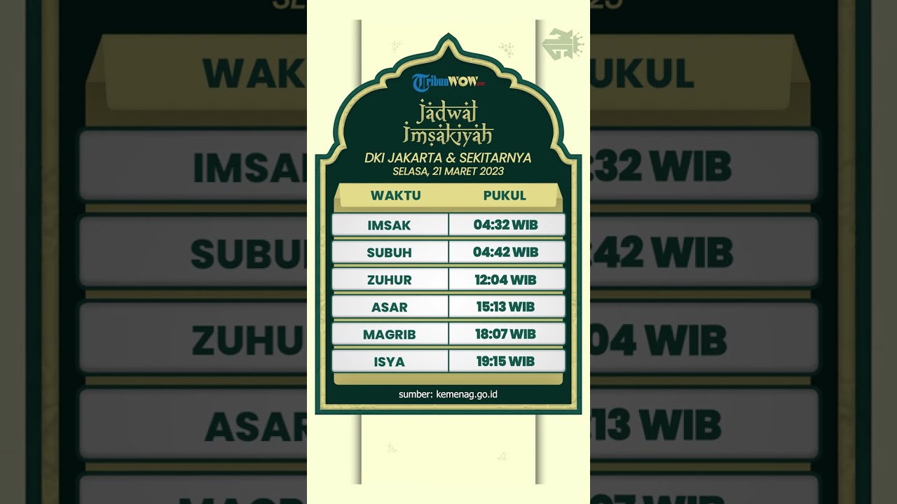 TRIBUN-VIDEO.COM - Simak jadwal imsakiyah wilayah DKI Jakarta dan sekitarnya untuk Selasa (21/3/2023), bagi Anda yang ingin melakukan ibadah puasa besok.