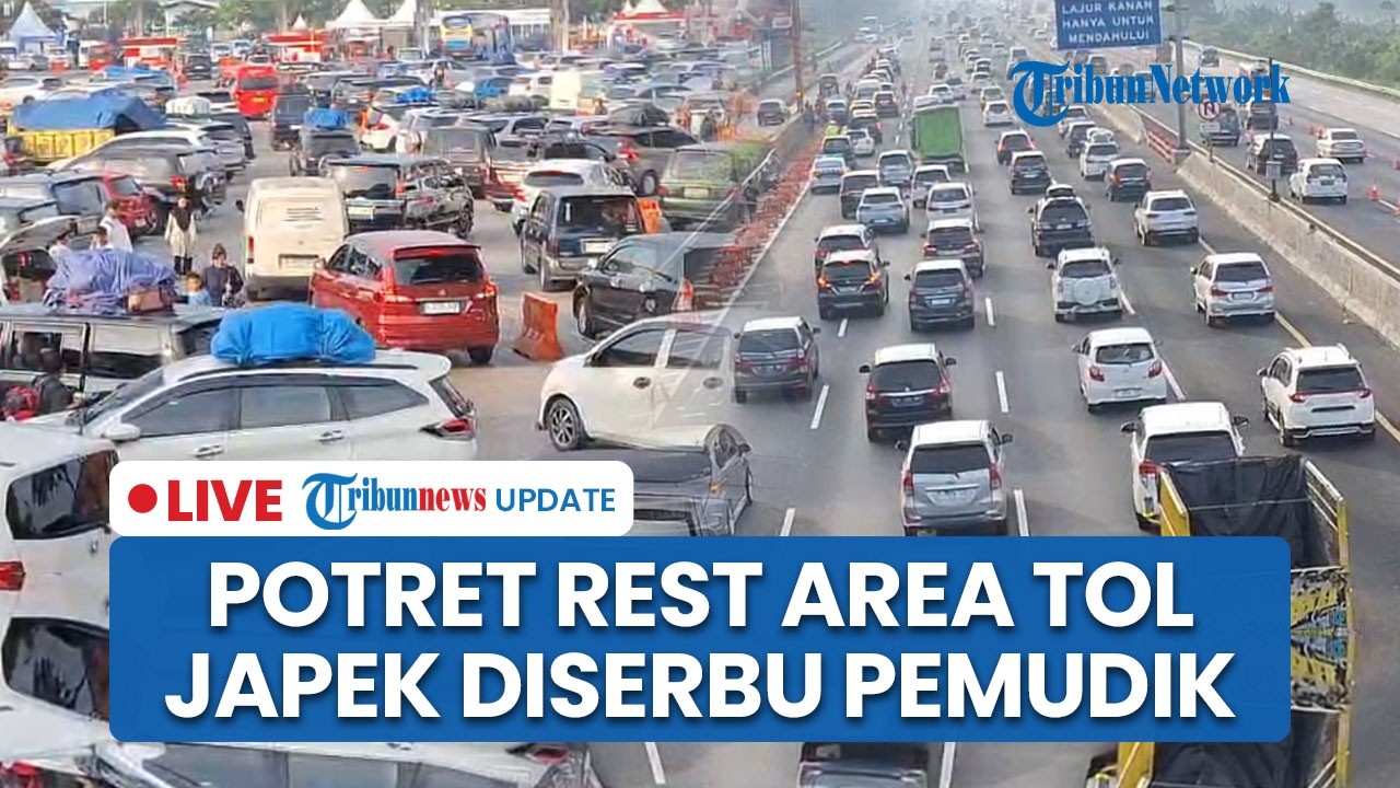 LIVE: Penampakan Rest Area Tol Jakarta-Cikampek Membludak Diserbu Pemudik, Antrean Mobil Mengular