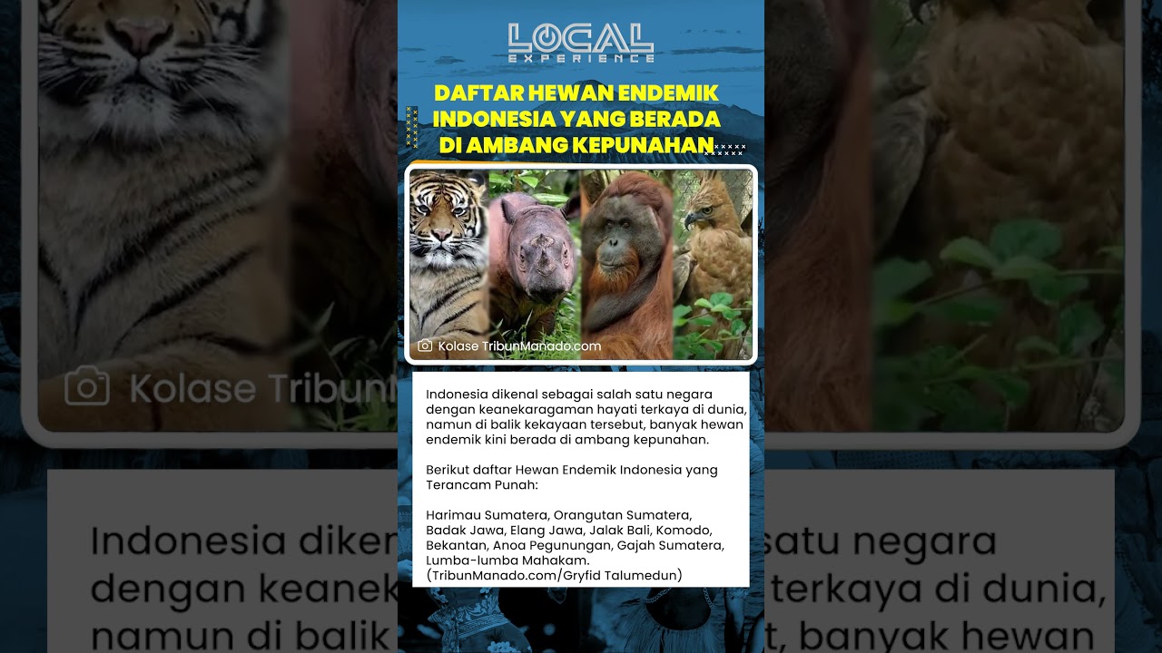 TRIBUN-VIDEO.COM - Indonesia dikenal sebagai salah satu negara dengan keanekaragaman hayati terkaya di dunia. Namun di balik kekayaan tersebut, banyak hewan endemik kini berada di ambang kepunahan.