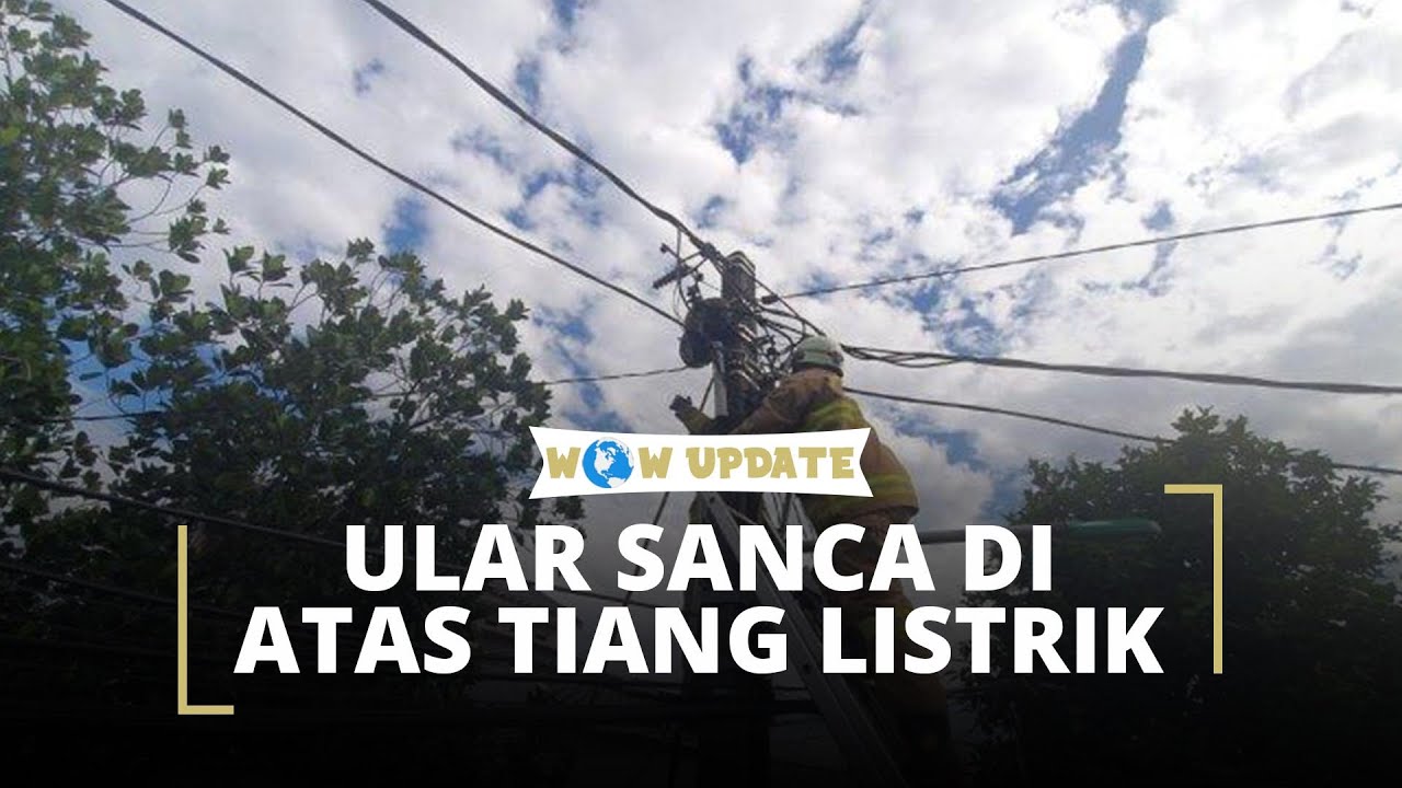 Tim Damkar Selamatkan Ular Sanca Sepanjang 3 Meter yang Tersangkut Tiang Listrik
