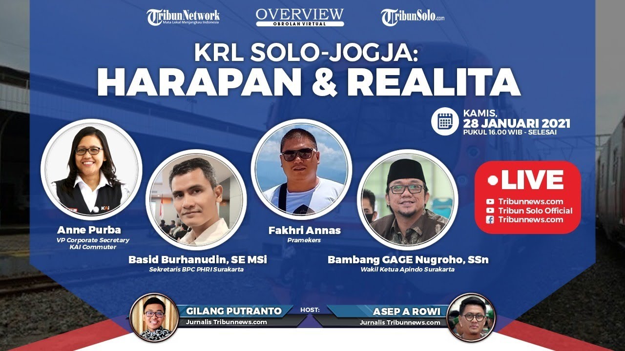 Kupas Tuntas soal KRL Solo Jogja di Obrolan Virtual Tribun Solo Edisi Kamis 28 Januari 2021 dalam video di atas.(*)