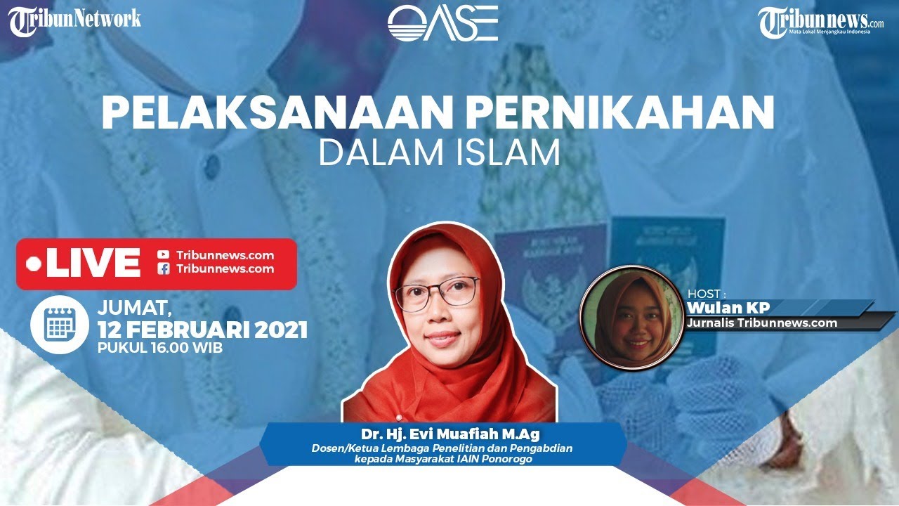TRIBUN-VIDEO.COM - Oase kali ini, Jumat (12/2/2021) membahas tema tentang Pelaksanaan Pernikahan dalam Islam.