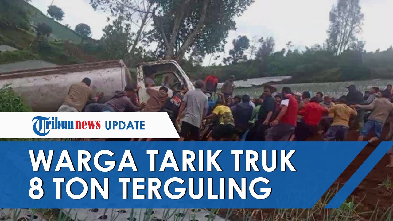 TRIBUN-VIDEO.COM - Sejumlah orang di Kecamatan Jenawi, Karanganyar, Jawa Tengah bergotong-royong menarik sebuah truk yang terguling di sebuah lahan sayur.