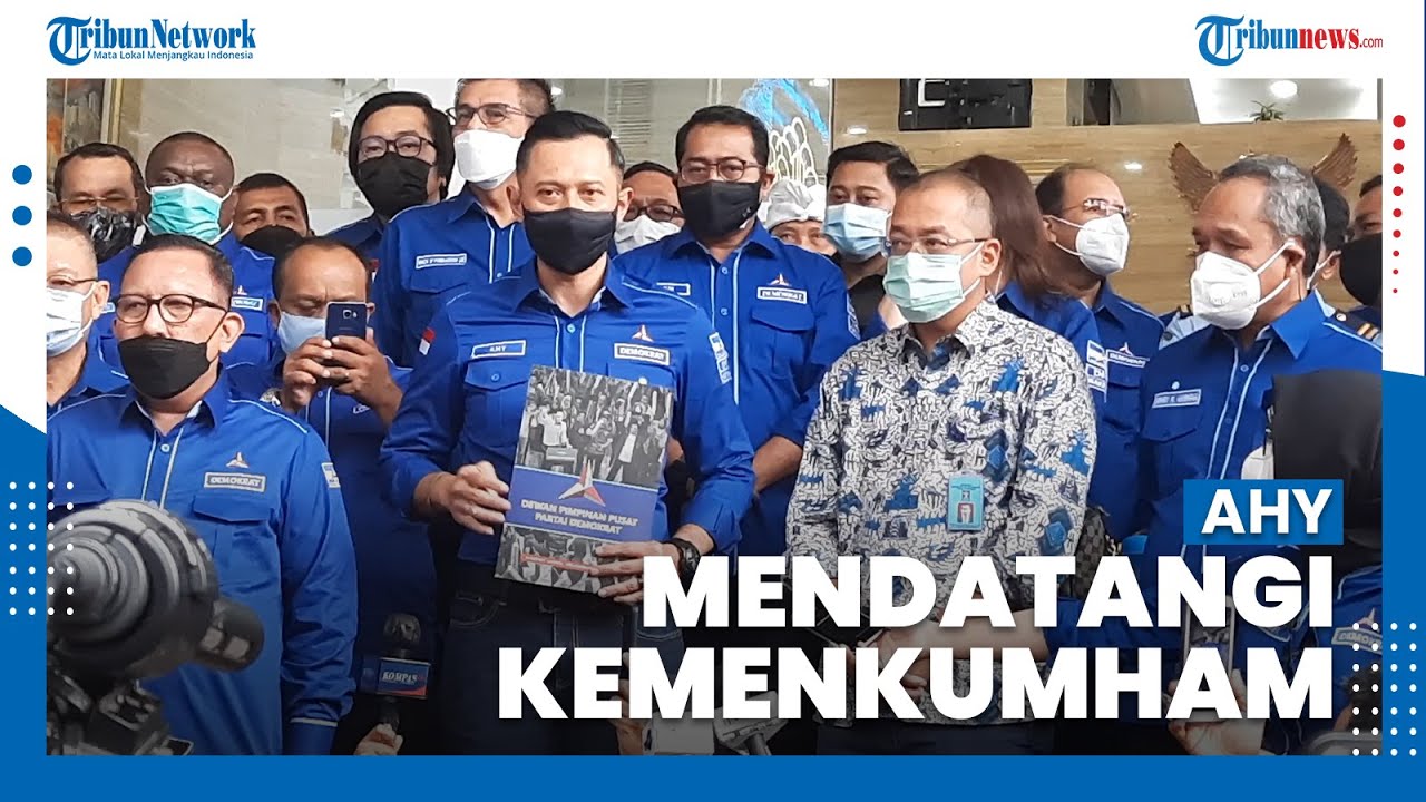 TRIBUN-VIDEO.COM - Ketua Umum Partai Demokrat, Agus Harimurti Yudhoyono (AHY) bersama pimpinan DPD Partai Demokrat saat mendatangi gedung Direktorat Jenderal (Ditjen) Administrasi Hukum Umum (AHU) Kementerian Hukum dan HAM (Kemenkumham), Jakarta Selatan, Senin (8/3/2021).