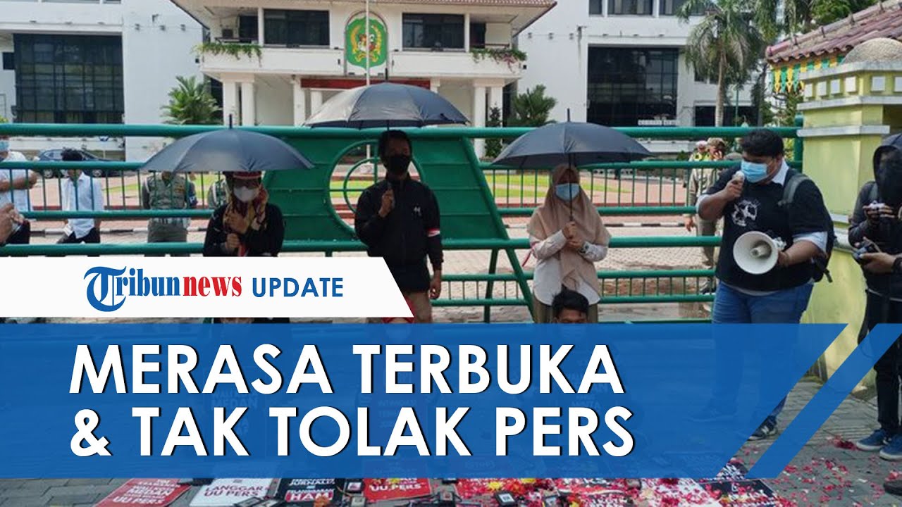 Aksi itu terjadi setelah adanya dugaan intimidasi yang dilakukan personel Satuan Polisi Pamong Praja (Satpol PP) yang bertugas di kantor wali kota kepada dua jurnalis, Rabu (14/4/2021) sore.