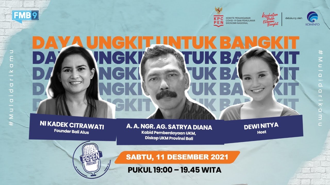 PCPEN PODCAST yang disiarkan langsung dari Studio Tribun Bali ini, akan membahas tentang percepatan ekonomi Bali dengan langkah strategis melalui program stimulus ekonomi, relaksasi pembiayaan UMKM, akan tayang pada: