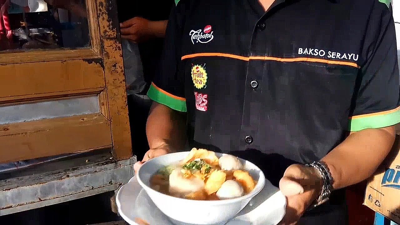 Jika ada yang pesan, si penjual tinggal menuangkan kuah bakso serta bawang merah goreng dan seledri sesuai permintaan.