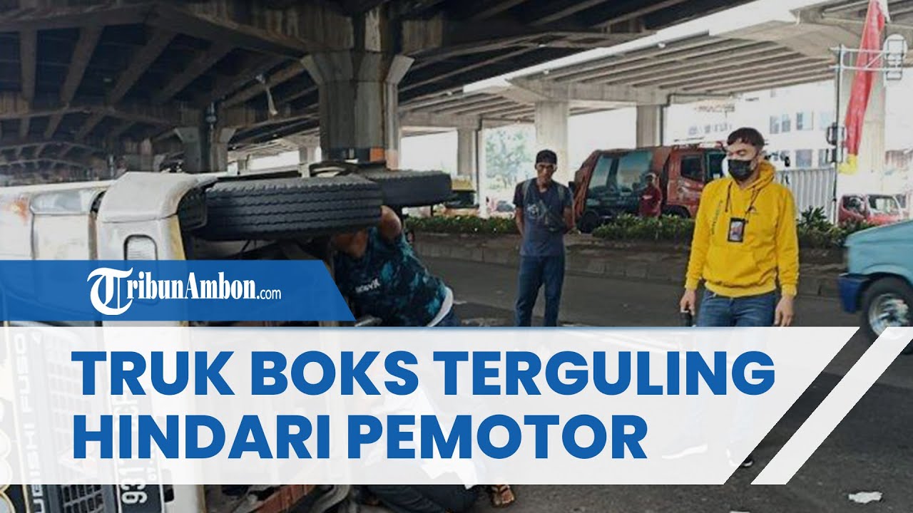 Gara-gara Hindari Pemotor, Truk Boks Banting Setir dan Terguling di Jalan DI Panjaitan Jatinegara