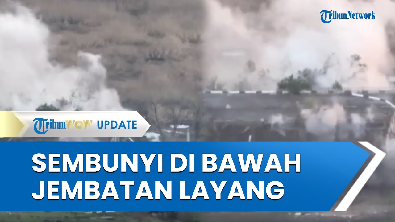 Dalam video tersebut terlihat tentara Ukraina sedang berusaha bersembunyi di bawah jalan layang.