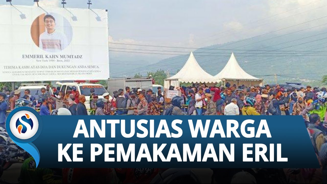 TRIBUN-VIDEO.COM, BANDUNG - Warga antusias datang ke pemakaman Emmeril Kahn Mumtadz di Cimaung, Kabupaten Bandung, meski tak diperbolehkan masuk lokasi, Senin (13/6/2022).