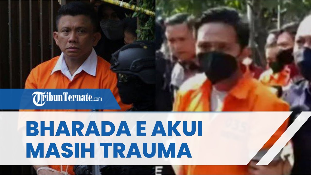 Bharada E diketahui gemetar karena trauma saat masuk ke lokasi kejadian saat proses rekonstruksi pembunuhan berencana Brigadir J pada 30 Agustus 2022.