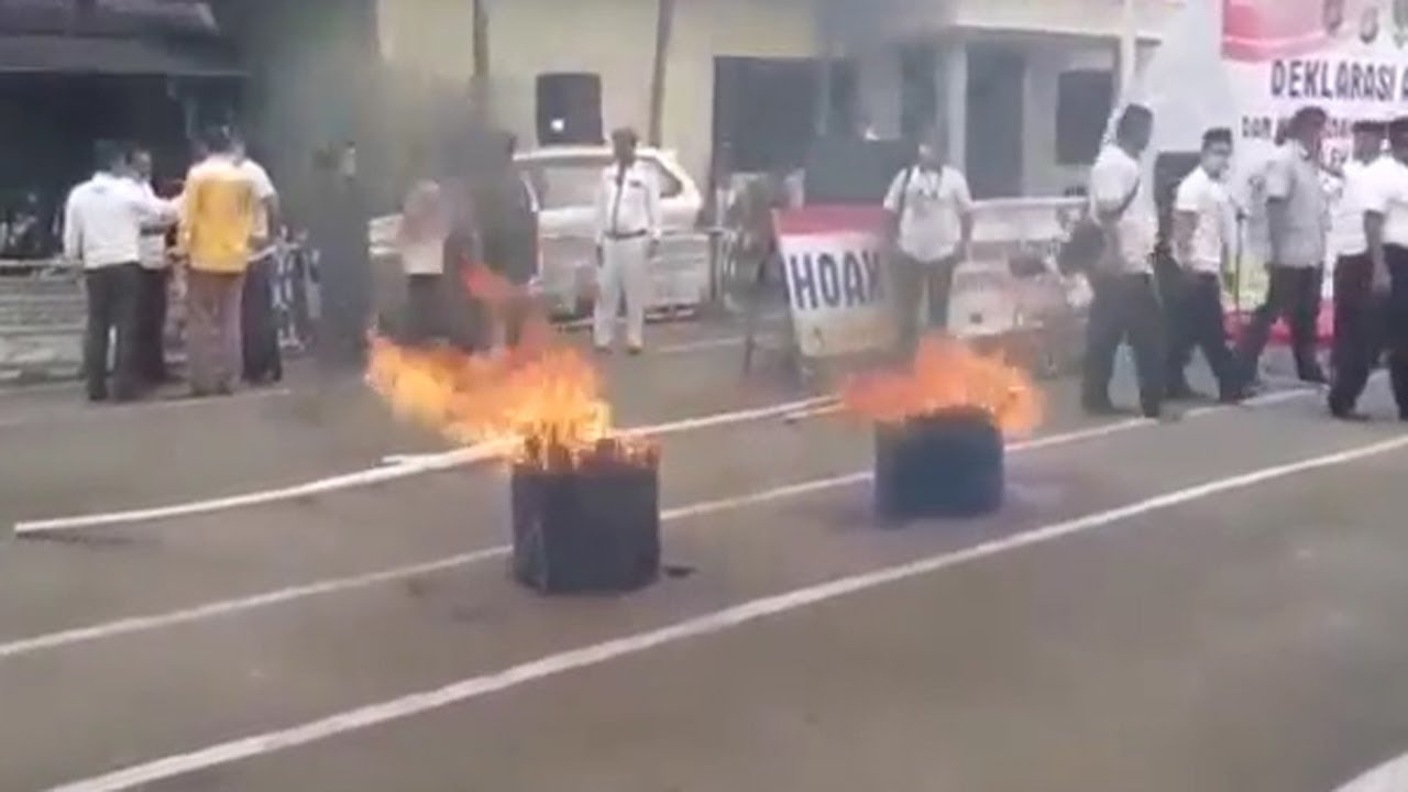 Pemusnahan dilakukan dengan dibakar di dalam tong drum, di halaman Mapolresta Depok.