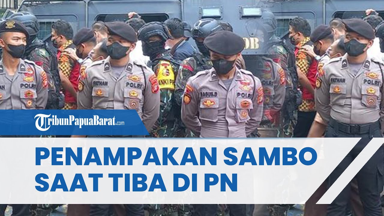 Sambo tiba di PN Jaksel pada pukul 09.10 WIB.