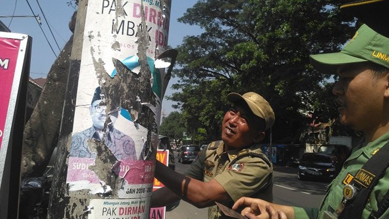 Panwaslu dan Satpol PP Ringkus Alat Peraga Kampanye yang Dipasang di Sembarang Tempat