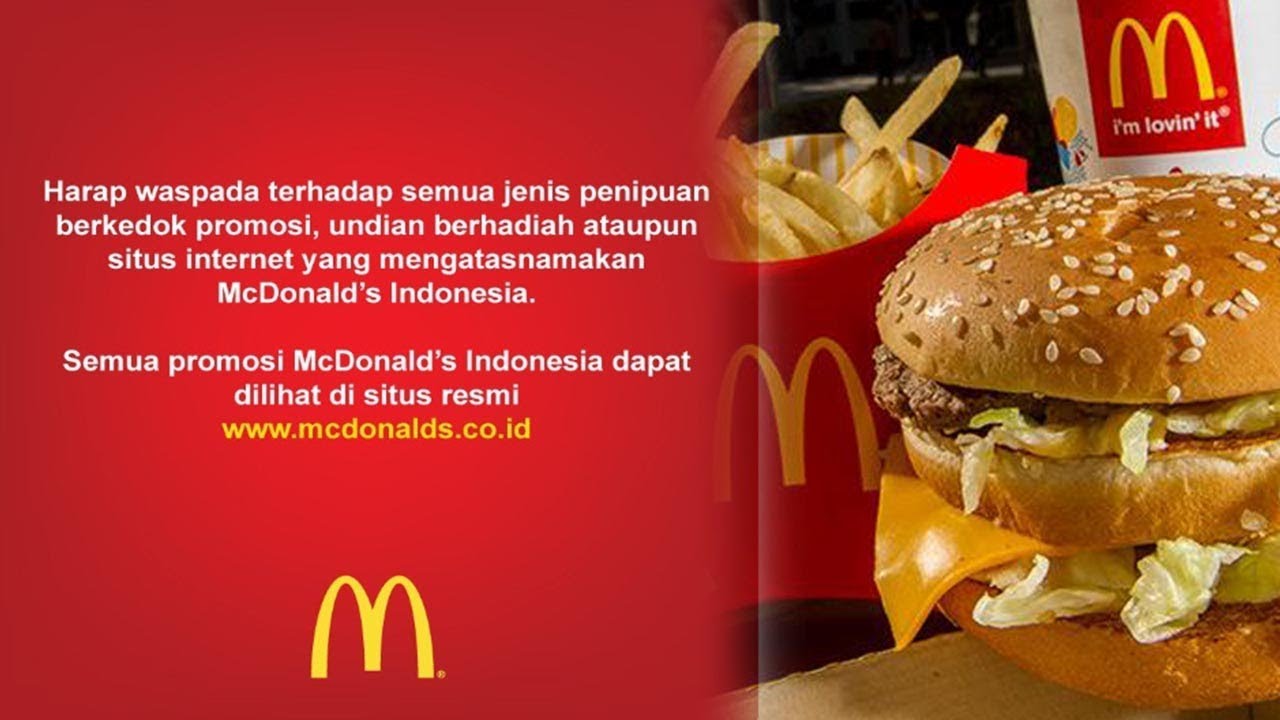 "Harap waspada terhadap semua jenis penipuan yang mengatasnamakan McDonald’s Indonesia."