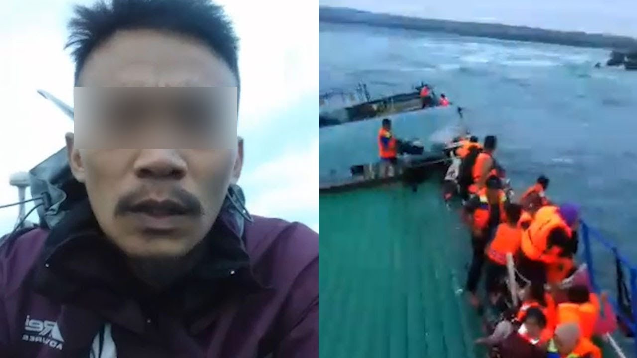 Pria yang tak mengenakan pelampung itu menyiarkan langsung situasi kapal yang saat itu miring dan perlahan mulai tenggelam.