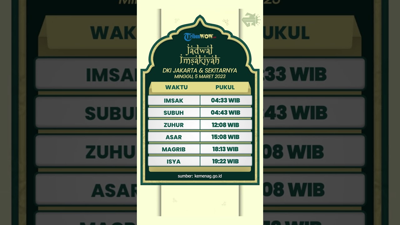 Jadwal Salat dan Imsakiyah DKI Jakarta Sekitarnya, Minggu 5 Maret 2023
