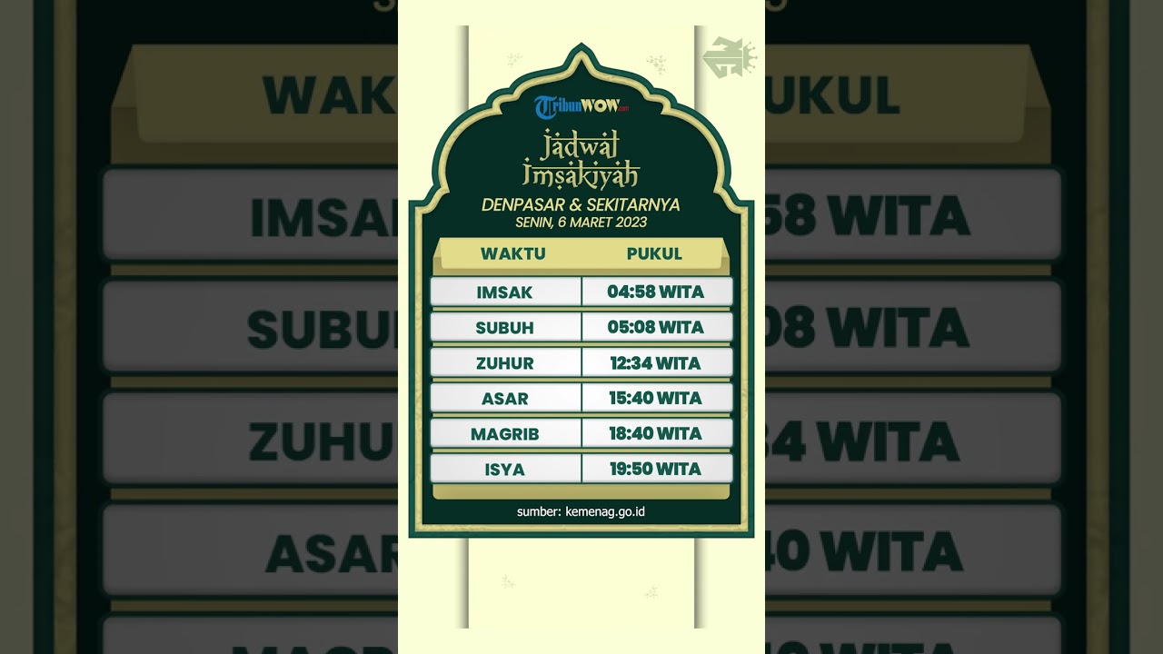 TRIBUN-VIDEO.COM - Simak jadwal imsakiyah wilayah Denpasar dan sekitarnya untuk Senin (6/3/2023), bagi Anda yang ingin melakukan ibadah puasa besok.