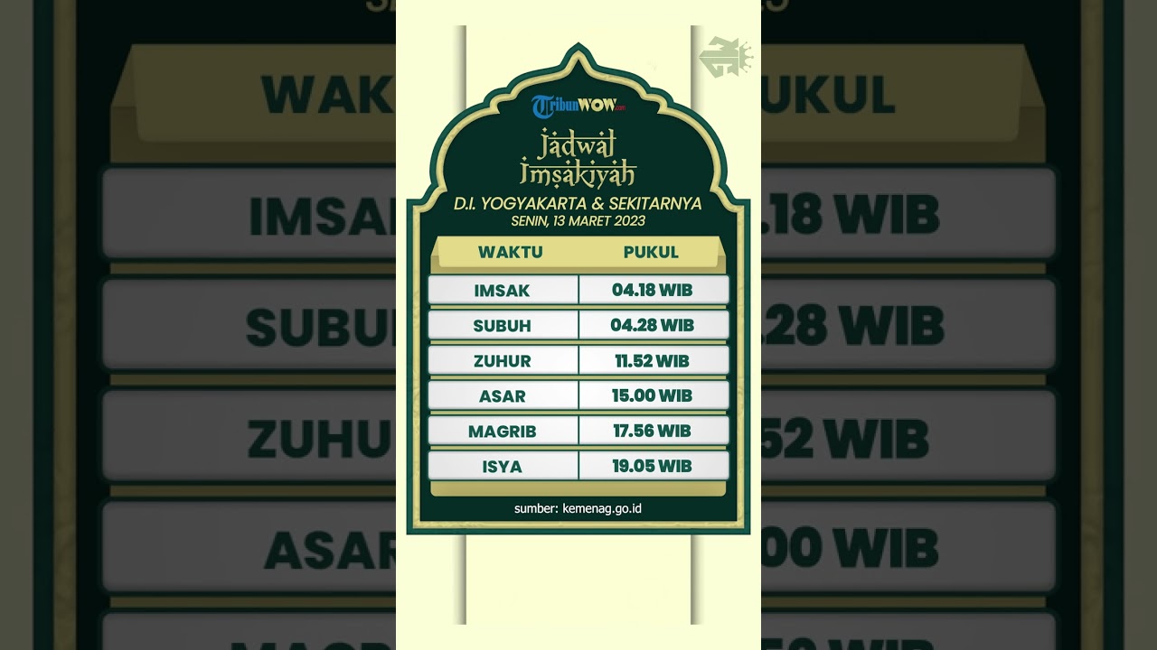 TRIBUN-VIDEO.COM - Simak jadwal imsakiyyah wilayah Yogyakarta dan sekitarnya untuk Senin (13/3/2023), bagi Anda yang ingin melakukan ibadah puasa besok.