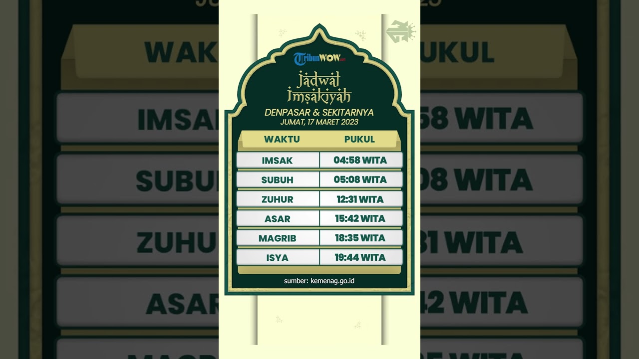 TRIBUN-VIDEO.COM - Simak jadwal imsakiyah wilayah Denpasar dan sekitarnya untuk Jumat (17/3/2023), bagi Anda yang ingin melakukan ibadah puasa besok.