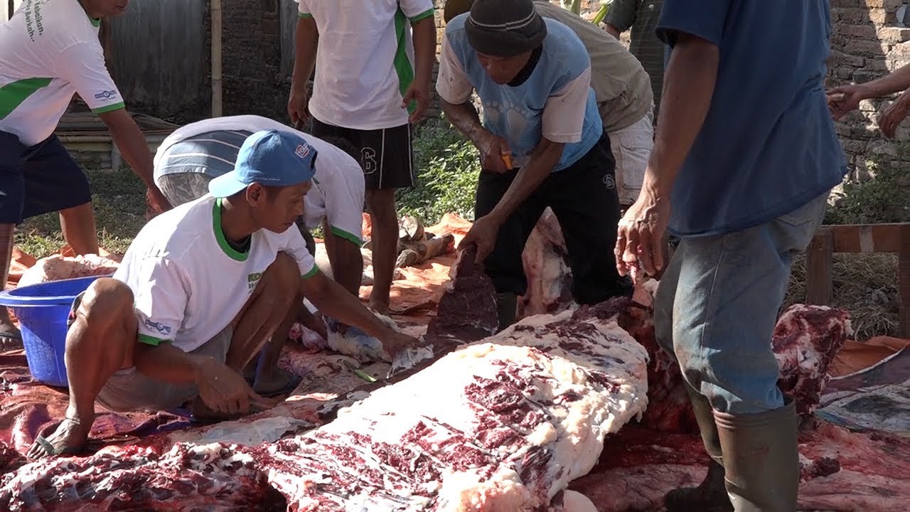 Proses penyembelihan, pengulitan, pemotongan daging, hingga pembagian daging dilakukan dari pukul 06.00 WIB hingga 11.00.