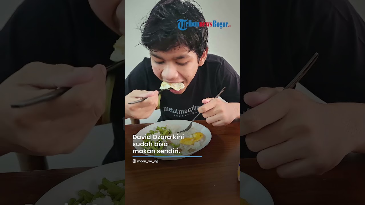 Namun berbeda dari sebelumnya, kini David tampak menyuap sendiri makanannya menggunakan sendok dan garpu.