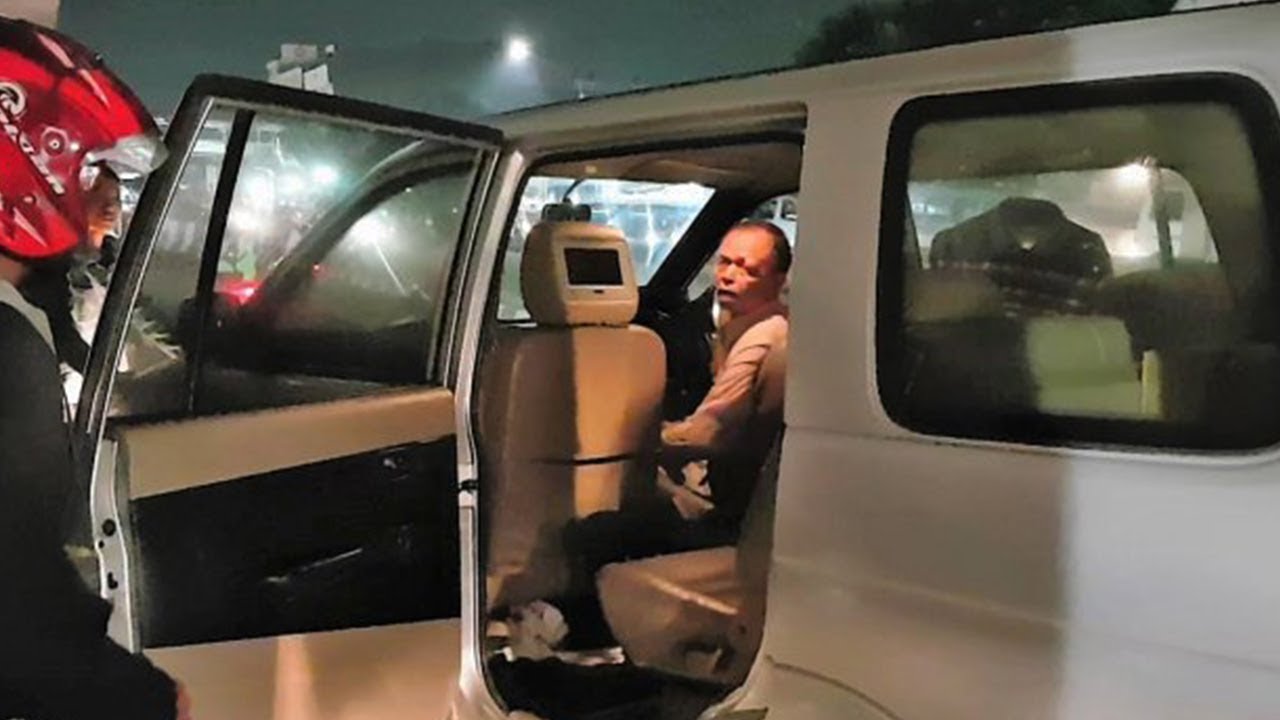 Kemudian, saat pengemudi mobil hendak menepikan kendaraan, pengendara sepeda motor tampaknya mengira ia hendak kabur.