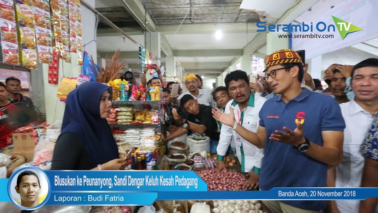 TRIBUN-VIDEO.COM, BANDA ACEH - Cawapres Sandiaga Salahuddin Uno turut melakukan blusukan ke Pasar Peunayong, Banda Aceh, Selasa (20/11/2018).