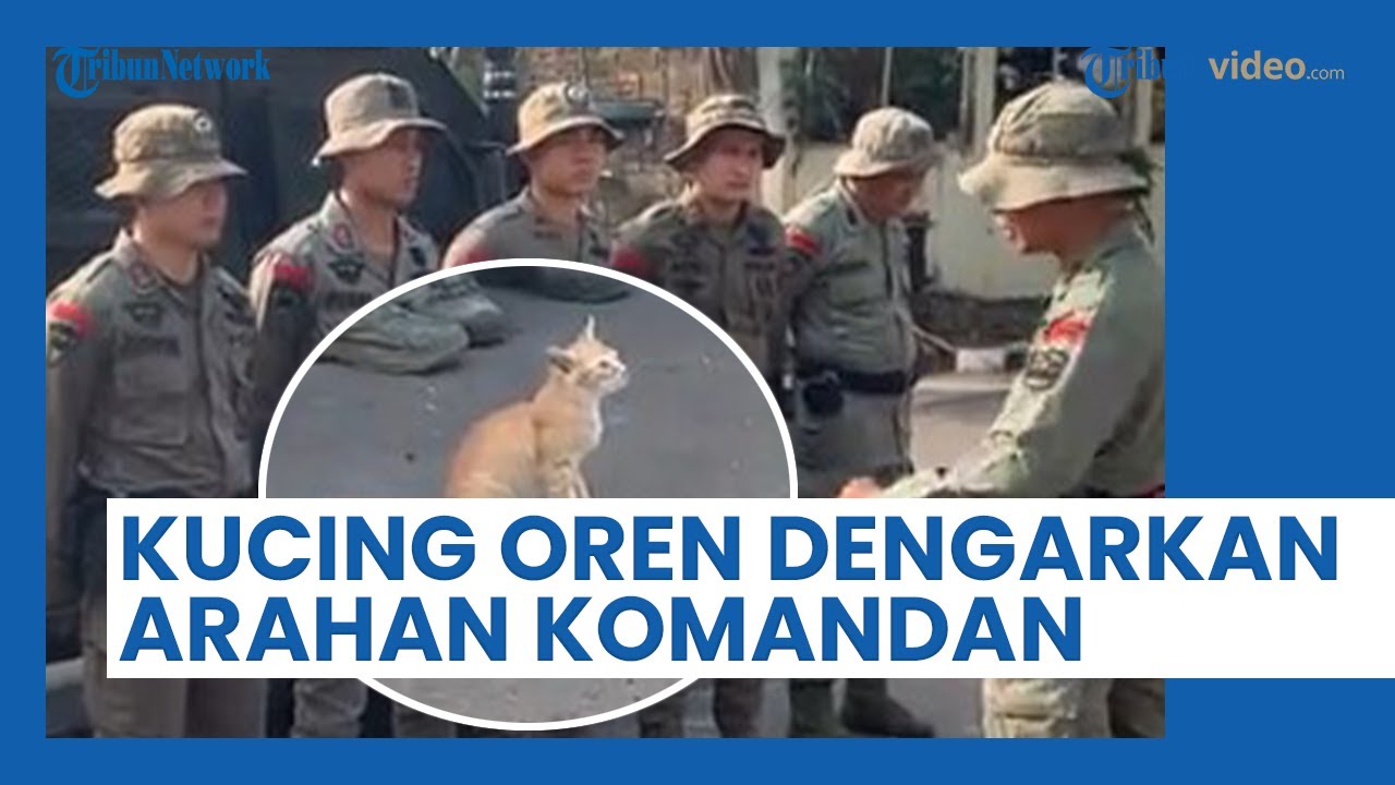 Momen Kucing Oren Ikut Berbaris dengan Anggota Brimob, Serius Dengarkan Arahan Komandan