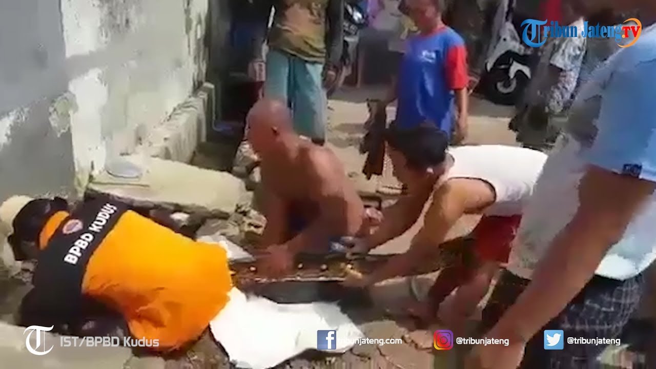 Dapat informasi dari warga, kemudian datanglah anggota BPBD Kudus untuk melakukan evakuasi.