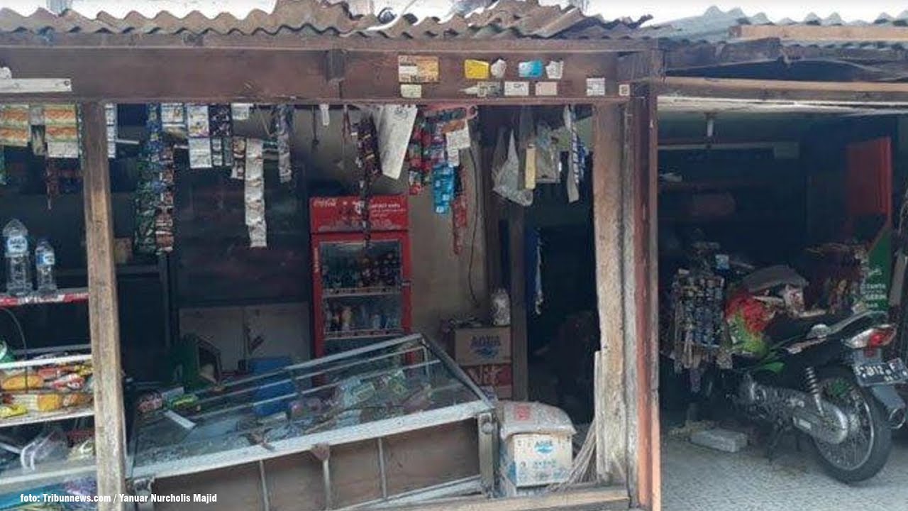 Kondisi warung yang berada depan rumah pun porak-poranda.
