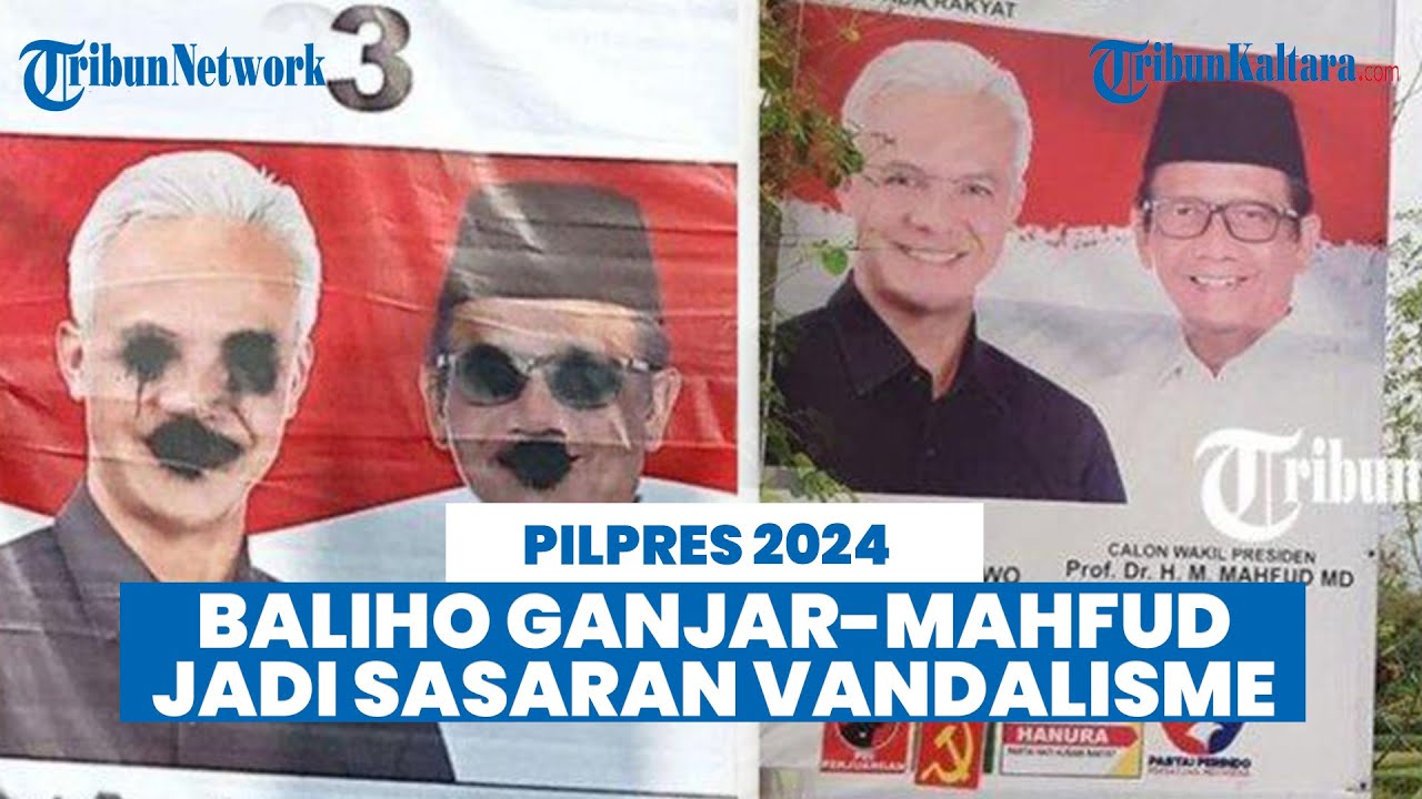 Baliho pasangan calon presiden dan wakil presiden nomor urut tiga Ganjar Pranowo-Mahfud MD di sejumlah wilayah di Jawa Timur menjadi korban vandalisme.