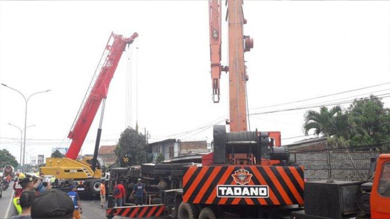 Proses Evakuasi Truk Tangki yang Terguling Butuh Dua Truk Crane