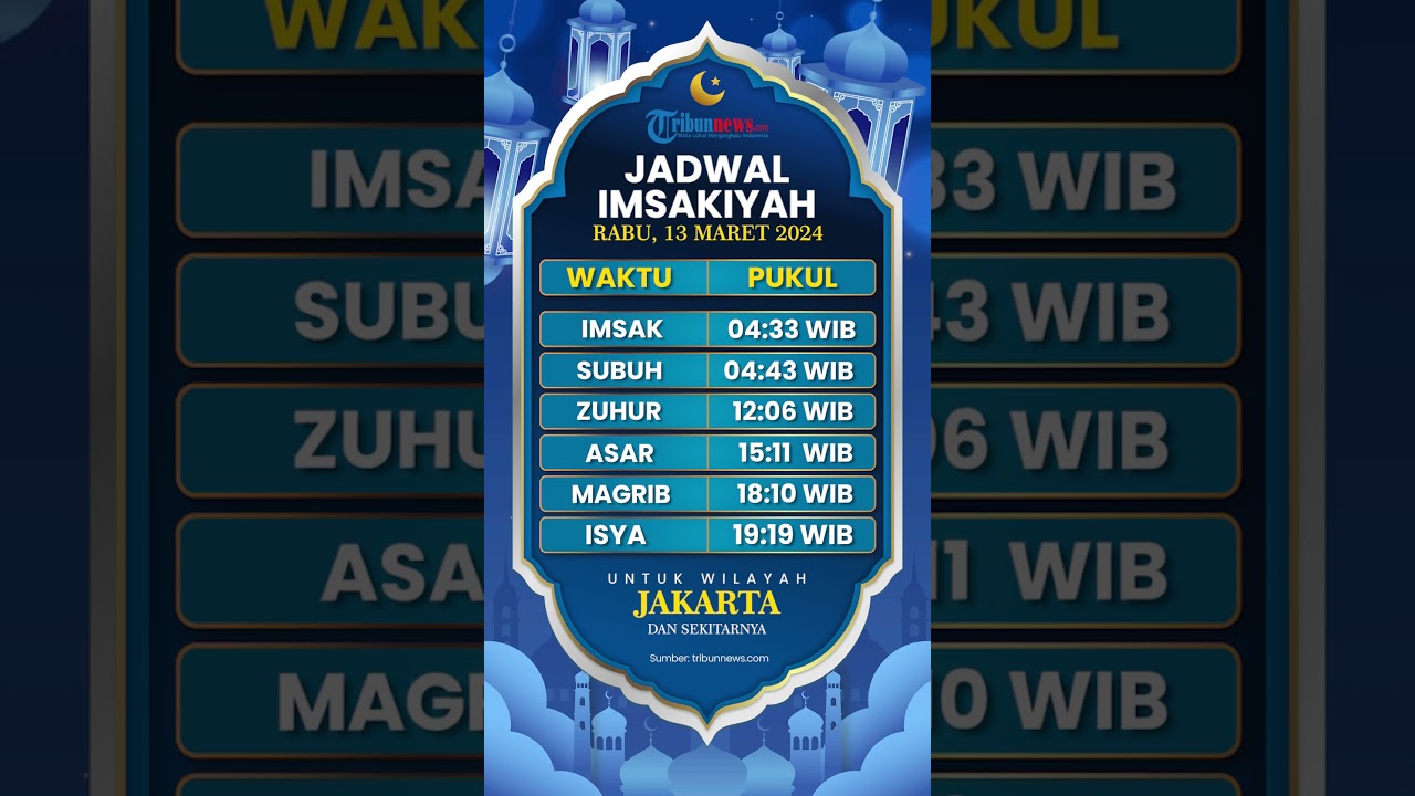 Jadwal Imsakiyah Wilayah Jakarta dan Sekitarnya besok Rabu 13 Maret 2024