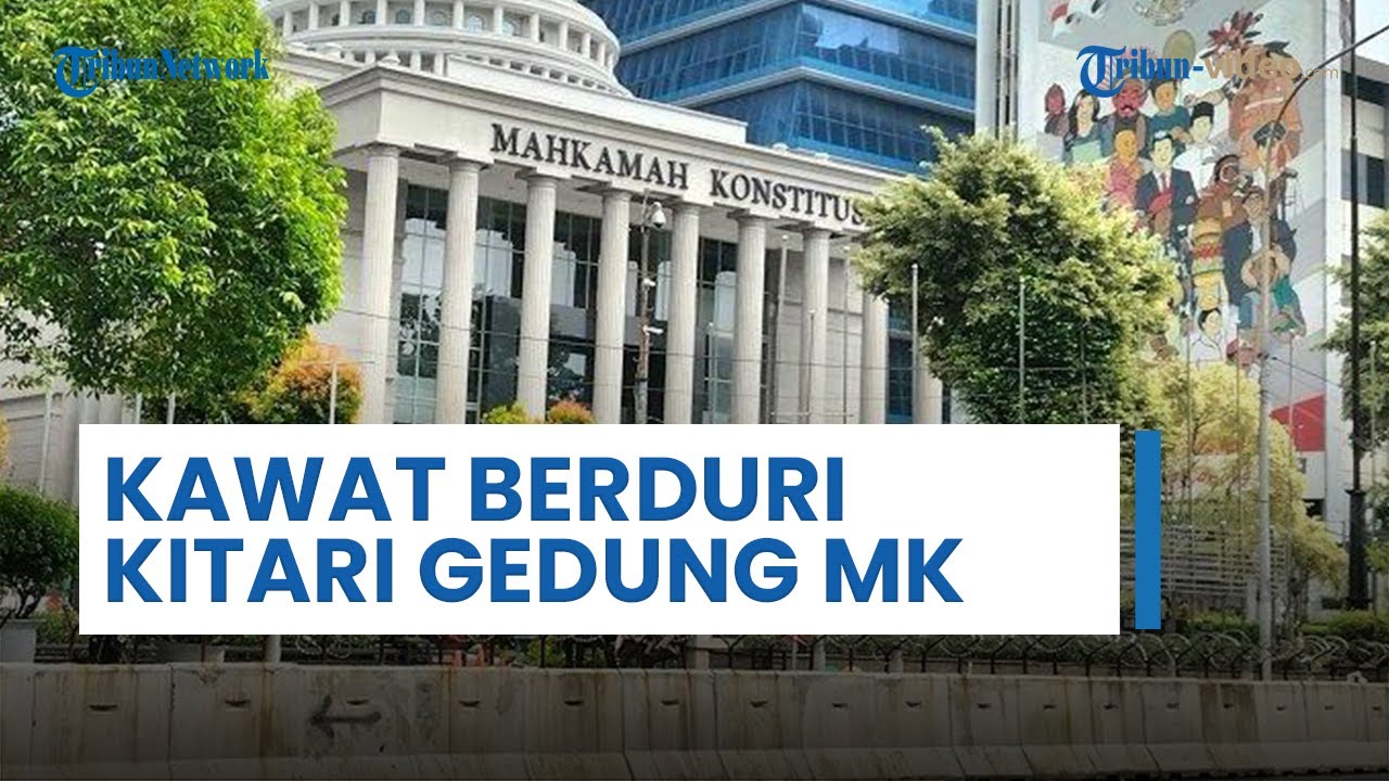 TRIBUN-VIDEO.COM - Barrier beton dan kawat berduri tampak terpasang di kawasan Gedung Mahkamah Konstitusi (MK), Jakarta pada Senin (25/3/2024).