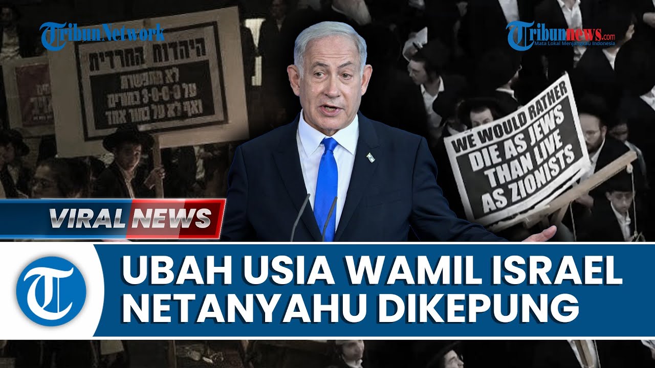 Di mana puluhan ribu massa melakukan aksi demo di depan kediaman Netanyahu untuk memprotes kebijakan wajib militer bagi pelajar seminari Yahudi ultra-Ortodoks di Yerusalem.