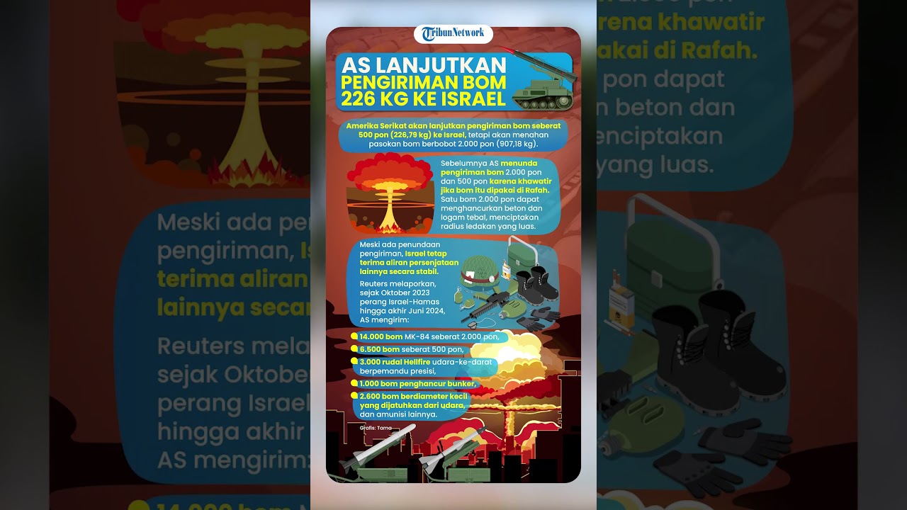 TRIBUN-VIDEO.COM - Amerika Serikat akan lanjutkan pengiriman bom seberat 500 pon (226,79 kg) ke Israel, tetapi akan menahan pasokan bom berbobot 2.000 pon (907,18 kg).