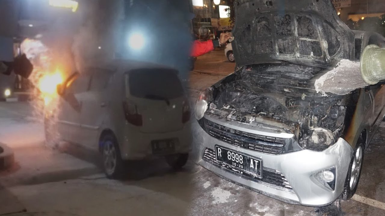 Mobil Agya Terbakar, Api Keluar dari Kap Depan Mesin Mobil