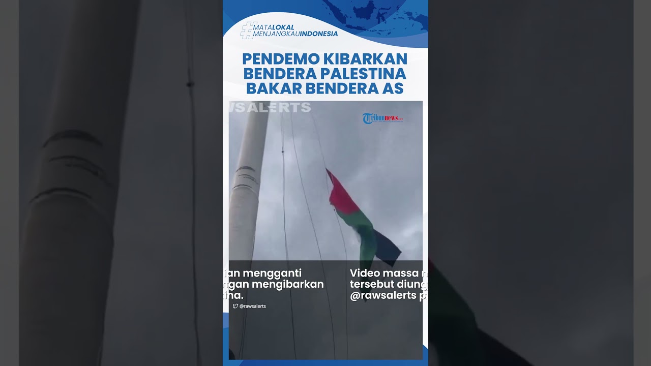 Tak lama kemudian bendera Palestina dikibarkan sedangkan bendera AS dibakar. (Tribun-Video.com)