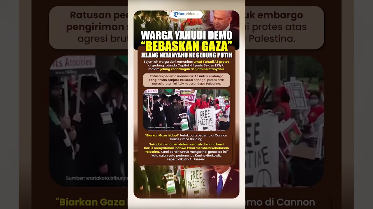 TRIBUN-VIDEO.COM - Sejumlah warga dari komunitas umat Yahudi Amerika Serikat menggelar protes di gedung rotunda Capitol Hill pada Selasa (23/7) malam jelang kedatangan Perdana Menteri Israel Benjamin Netanyahu.